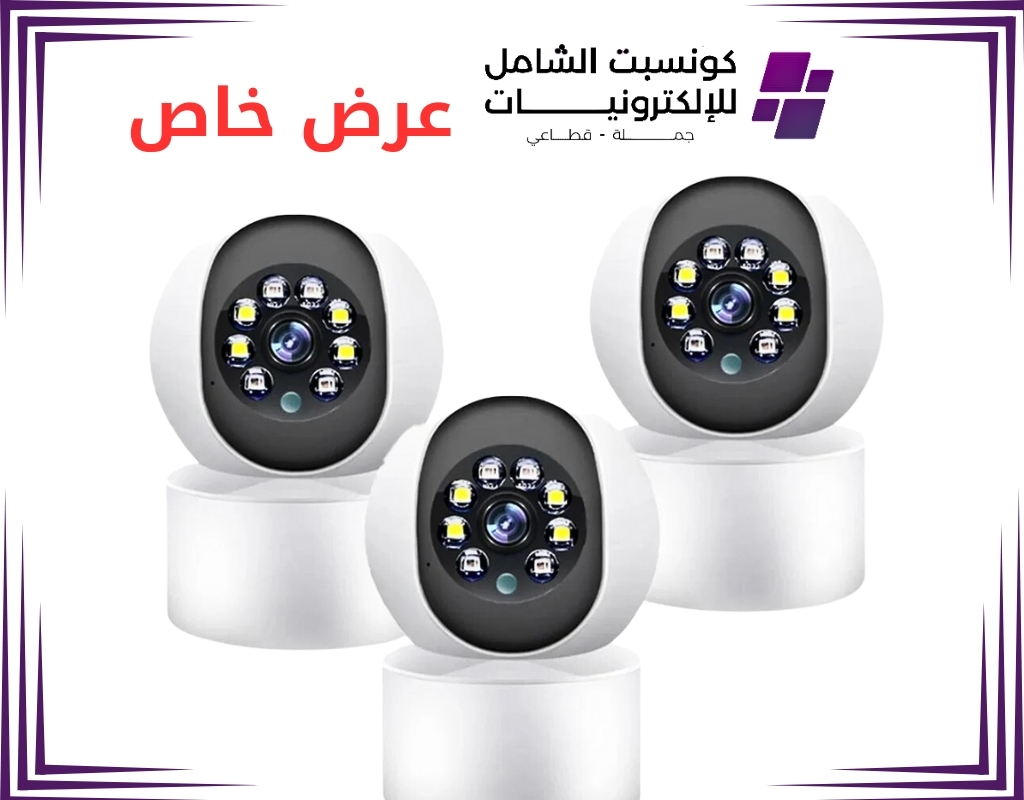 بكج 3 كاميرات مراقبة منزلية بدقة تصوير عالية ومزودة بنظام تتبع الحركة وميزة المكالمات تدعم الرؤية الليلية والتحكم عن بعد